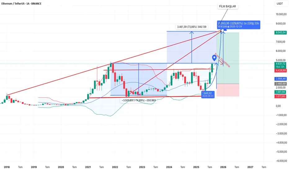 1900$ fiyattan paylaştığımız ve henüz 2 ay geçmeden 4.600$ fiyat bandına gelerek kısmı düzeltme ve kar satışı gören ETH 42 Milyar doların üzerinde gerçekleşen hacim ile düzeltmenin haftalık bazda gerçekleşeceğini bir önceki grafiğimizde yolumuza devam edeceğimizi belirtmiştik. Kademeli olarak kar satışları gelse de hacimde artışın devam edeceğiniz kısada 10.000$ testini gerçekleştireceğini ve RED yiyerek 9.000$ seviyelerine çekilmenin gerçekleşeceği kanaatindeyim.