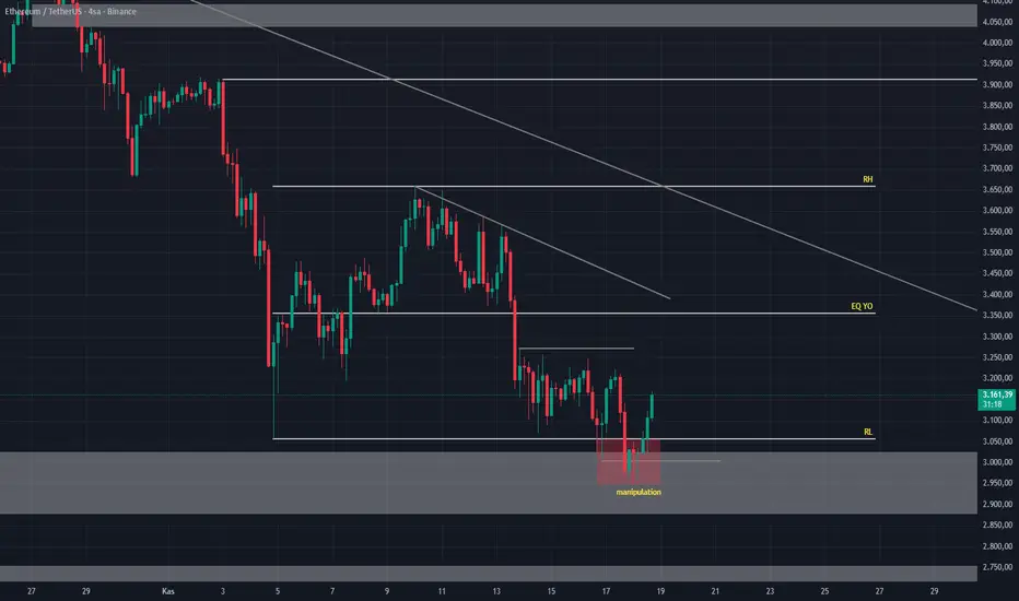Ethereum’da PO3 formasyonunun manipulation aşaması tamamlandı.