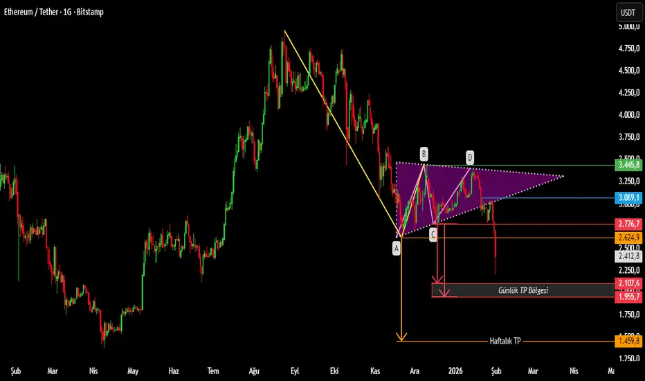 Haftalık kapanışın 2624.9 altında olması durumunda, orta vadede fiyatın 1460 seviyesine kadar düşmesi söz konusu olabilir.