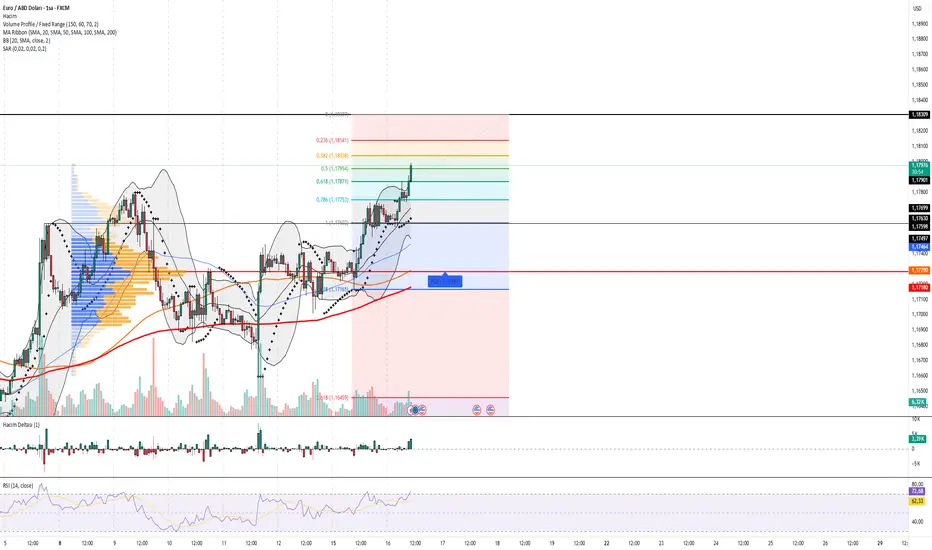 📌 ÖzetEUR/USD, 1.1814 direncine doğru ilerliyor. Bu seviyenin aşılması halinde 1.1830 – 1.1850 bölgesi hedeflenebilir. Ancak RSI aşırı alımda olduğu için kısa vadede düzeltme riski göz ardı edilmemeli. 1.1778 ve 1.1755 seviyeleri geri çekilmelerde güçlü destek olarak öne çıkıyor.