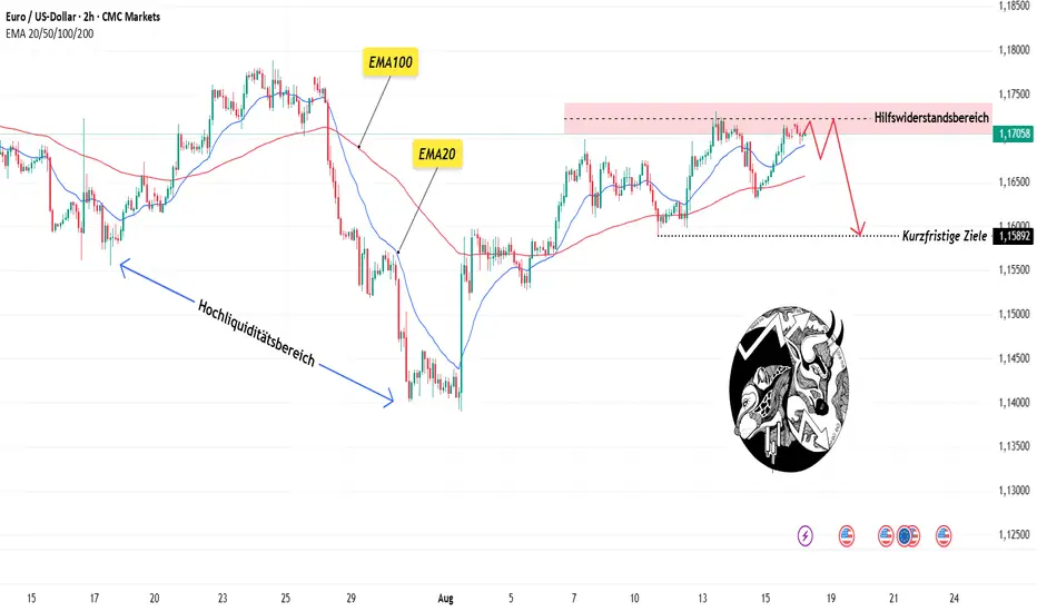 Hallo Trader, hier ein kurzes Update zu EUR/USD zum Wochenauftakt. Auf dem 2H-Chart (CMC Markets) bewegt sich das Währungspaar weiterhin unter starkem Verkaufsdruck, da es mehrfach im Bereich des sekundären Widerstands bei 1,1720–1,1750 zurückgewiesen wurde.
