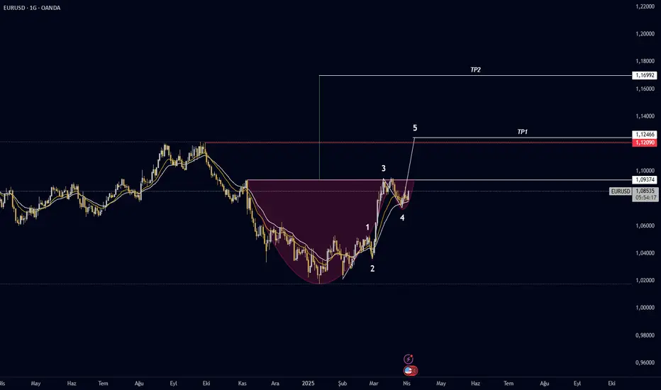 Herkese bol kazançlar, EURUSD günlük dalga sayımında 4. Dalganın tamamlandığını ve 5. dalganın oluşmak üzere olduğunu görüyoruz.