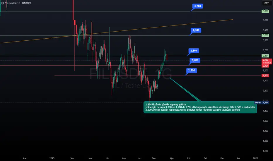 2,894 üstünde günlük kapanış gelirse yükselişin devamı 3,300 ve 3,780 dir yükselişin devamıdır eger 2,704 altı kapanış gelirse düzeltme derin leşe bilir buda 2.500 lere sarka bilir 2.500 altında