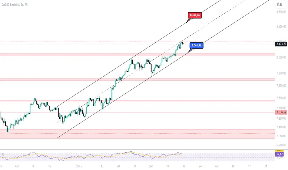 FRA40 4 saatlik grafikte yükselen trendinde devam ediyor.