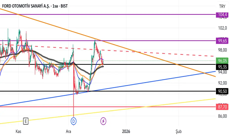 Bundan önce dediğim gibi 2 tane önemli direnç yerimiz vardı . İlki 99 ikincisi 104 göründüğü üzere 99 dan red yemiş ve altta 2 destek noktamız var ilki 95 diğeri 90 . Suanki yeri tehlikeli gibi gözüküyor. Ekleme yapacaksam paranın 3 te 1 ni ekleyeceğim 90 nda yedek param olduğu bir için hepsini ekliyecem