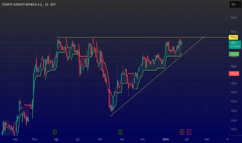 Çok güzel bir yükselen üçgeni var 153'ü kırarsa gider.