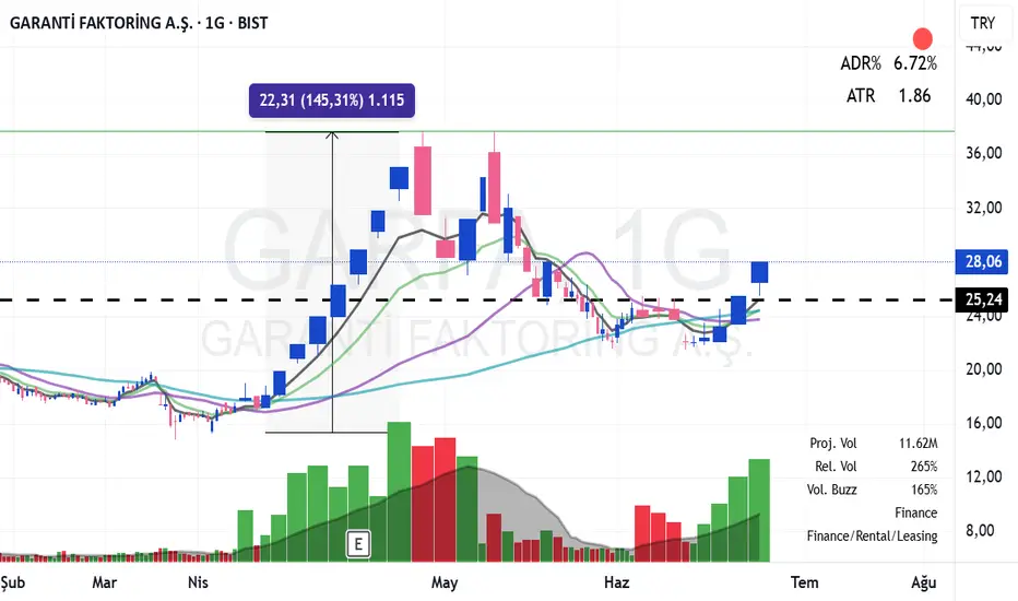 Nisan ayında tavan serisi yapan GARFA tekrar enerjisini topladı. Hacimli alımlar geliyor son günlerde. %10 civarı bir stopla risk alınabilir diye düşünüyorum. Bu tarz sert hareketler yapan hisseler için stop girmeden yapılan işlemlerin sonu hüsran olur. Riski belirlemek çok önemli. 25.5 civarı bölgeyi destek yapıp yapmayacağını öngörmek imkansız olmakla birlikte bugünkü fiyatlamada sabredilebilecek bölge orasıdır bana göre.