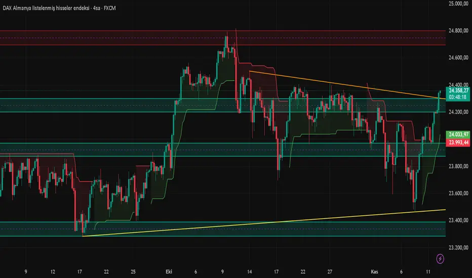 GER30 yükselişini devam ettiriyor. destek bölgesi 24.245 direnç bölgesi 24.745 seviyeleri takip edilebilir.