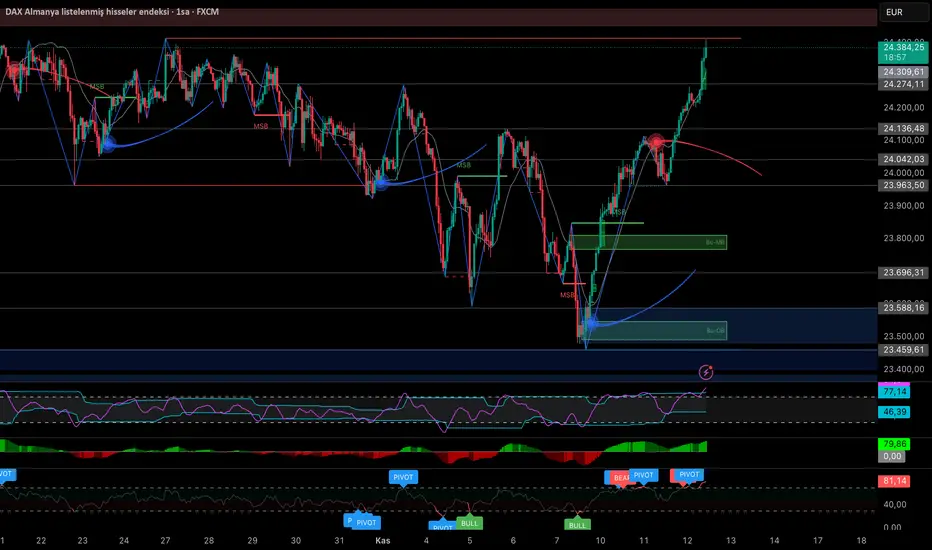 #DAX 23.450 – 23.580 aralığındaki boğasal bloğundan güçlü tepki aldı ve bu bölgeden başlattığı yükselişi sürdürdü.