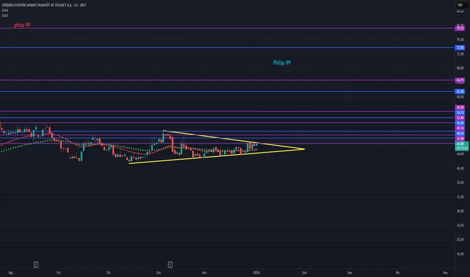 Grafikte Üçgen formasyonu olmakla beraber hedefler fibonacciye göre çizilmiştir.Formasyon şartı olarak sarı çizgi üzeri kapanışlar arayalım.