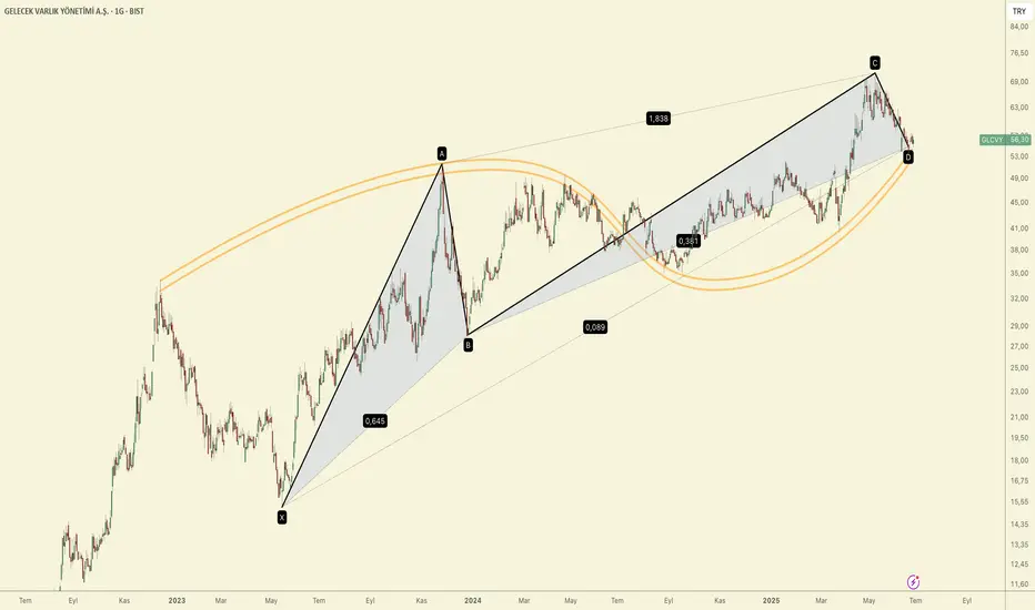 Harmonik formasyondaki uyumsuzluk :) ile eğrisel destek aynı noktada şans eseri buluşmuş. Batık kredileri belki yüzdürmeyi başarırlar. Hayatta başarılar :)