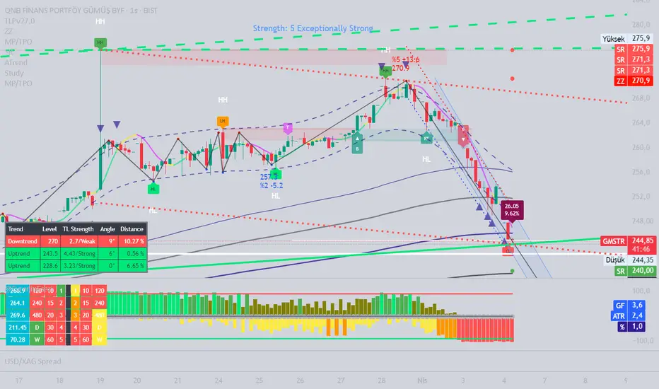 USD bazında günlükte desteğe geldi ve sarı alan toplama bölgesi. VIX de düşmeye başlarsa geri dönüş hızlı olacaktır. 245 TL GMSTR almak için çok çok uygun yer.
