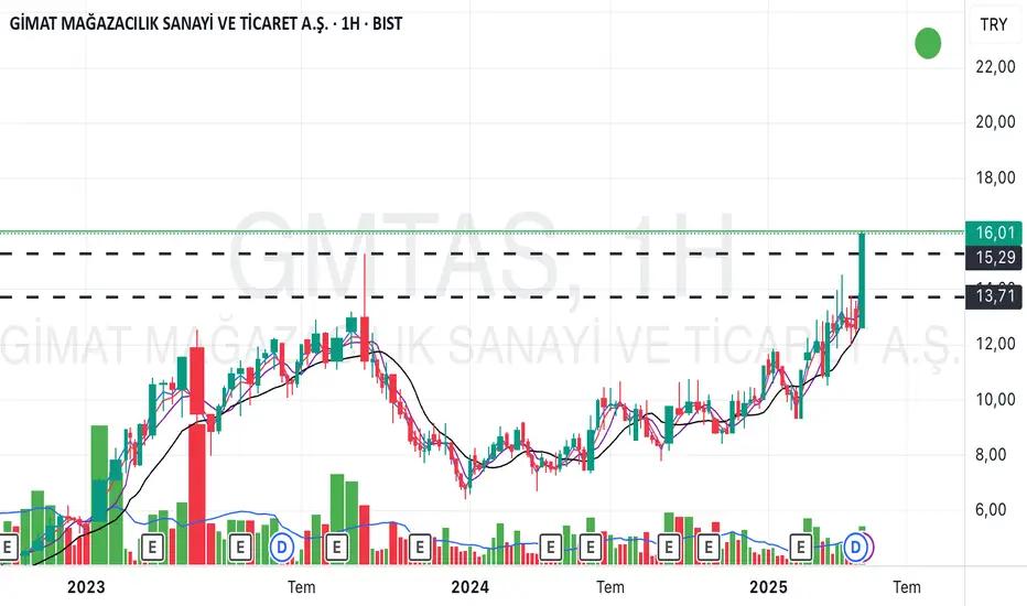 Direnç bölgesini yeni kırmış bir hisse. Daha önceden alınması gerekiyordu. Ne yazık ki alarm kurmadığım gözden kaçmış bir hisse. Hızlı yürüyüşüne devam edebilir. Açılışta alım yapabilirim. Son zirvesini ağustos 2023 yılında yapmış. Bu kadar uzun bir süre sonra çanak hareketini tamamlaması bize çanak boyu kadar bir hedef veriyor aslında. Bu da şu demek kabaca. Buradan %10 gibi bir miktar risk edip %125 gibi bir getiriyi kovalıyorsunuz. Kısa vadede bu artış tabiki ütopik gelebilir ancak fiyatın yeniden keşfedildiği alana girmiş bulunuyoruz.