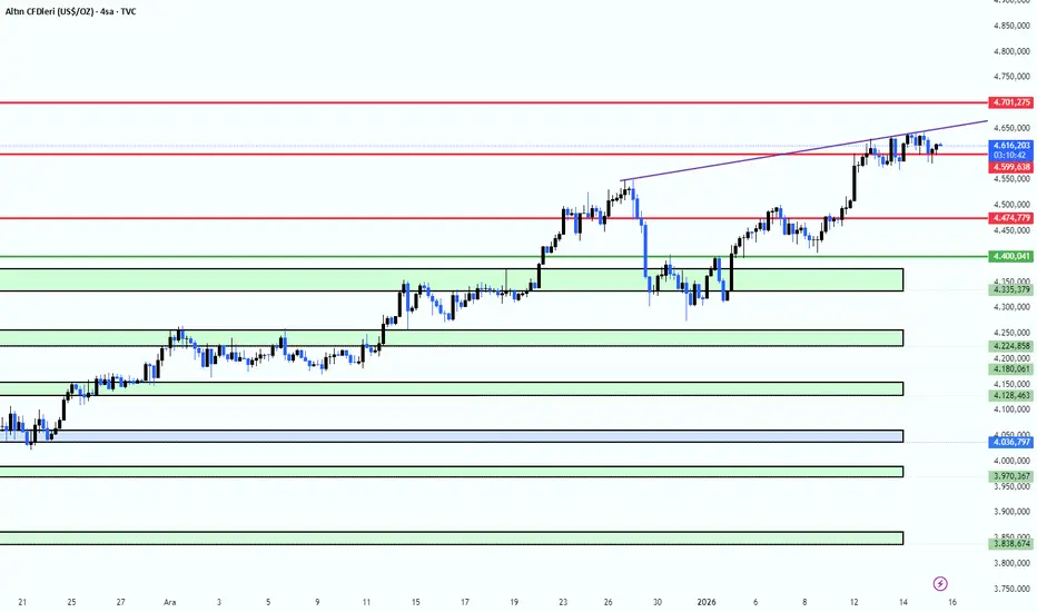 🕹️ Genel görünümde fiyat hareketi pozitif seyrini koruyor. Bu nedenle 4.599,638 destek bölgesindeki fiyat tepkisi, kısa vadeli yön tayini açısından kritik önem taşıyor.