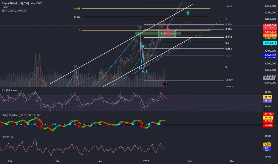 kısa vadede imbalance ve rsi uyumsuzluğu fiyatın düşeceğini gösteriyor ancak daha uzun vadede elliott dalgasına göre hedefler yeşil okla belirtildiği gibi