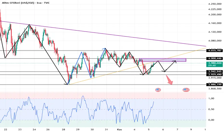 1 Saatlik Direnç: 4000, Destek: 3960.