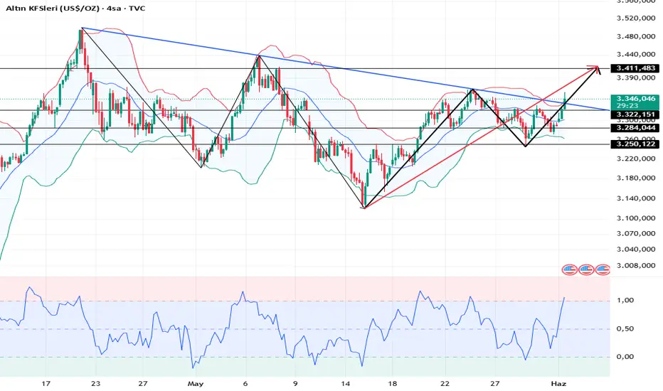 Dört saatlik grafik direnci 3400, destek 3322'nin altında