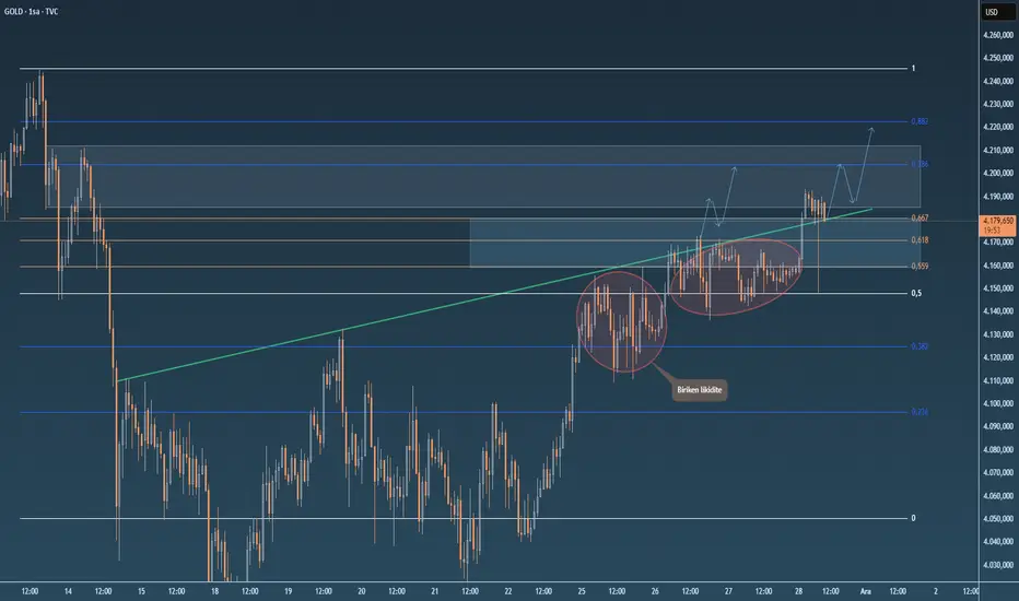 Bu bölge ve trend çizgisi üzerinde kaldığı sürece 4200 - 4220 hedef olarak takip edebiliriz.