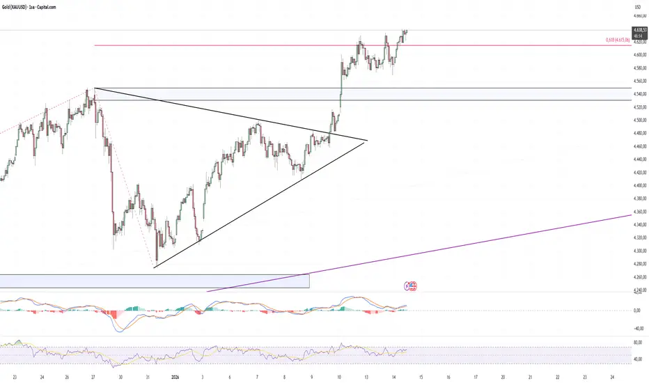 Değerli metalde fiyat bu seviyelere gelene kadar yükseliş patikasından oldukça güzel kârlar ettik birlikte. Günlükteki elliott prensibini dikkate alacak olursak 5nci dalga içindeyiz ve bu dalga bitişi 4830 olarak görünüyor. H4 zaman diliminde kırılan simetrik üçgen hedefi ve çanak yapısı da aynı bölgeyi işaret ediyor. Saatlikte de bir dikdörtgen yapısı kırılımı var. Çok çıktı diye düşüş arayanların acele etmemesini öneririm . Analizin video halini kanalıma yükledim 5 dk nızı ayırarak inceleyebilirsiniz. Olası geri çekilmelerde dikkate alacağım seviyeler vs hepsi videoda var 🙏🏻
