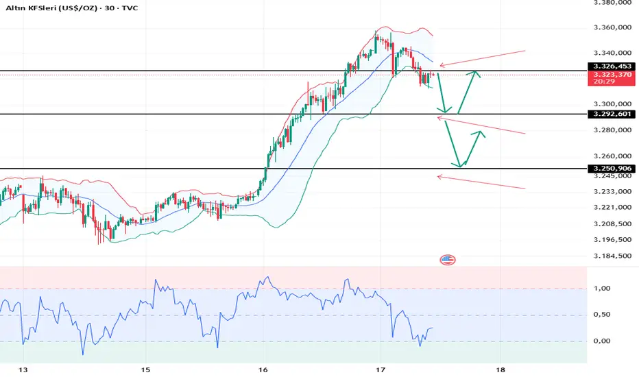 Mevcut trend analizine bakıldığında bugün kısa vadeli üst direnç 3326 civarında, alt destek ise 4 saatlik seviyede 3292 civarında yer alıyor. İşleyiş açısından bu pozisyona geri düştüğünde trend doğrultusunda alım ve işlem yapmaya devam edin. Aynı zamanda altın şu anda aşırı alım modelinde olduğundan sert bir düzeltmeye karşı dikkatli olunmalıdır.