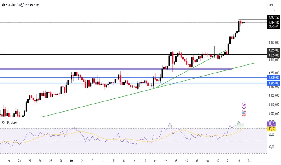 • Fiyat 4.490–4.500 zirve bölgesinde