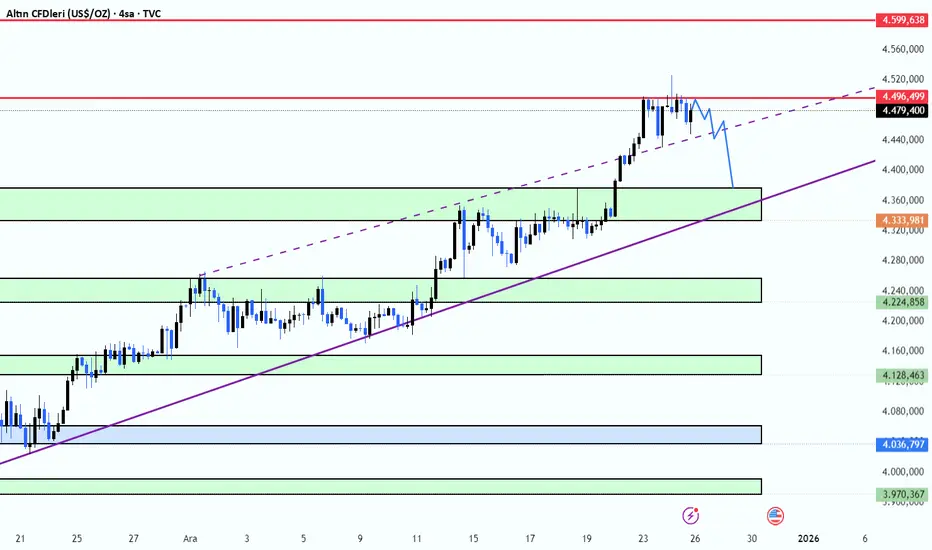 🕹️ Genel görünümde fiyat hareketi pozitif seyrini koruyor. Bu nedenle 4.496,499 direnç bölgesindeki fiyat tepkisi, kısa vadeli yön tayini açısından kritik önem taşıyor.