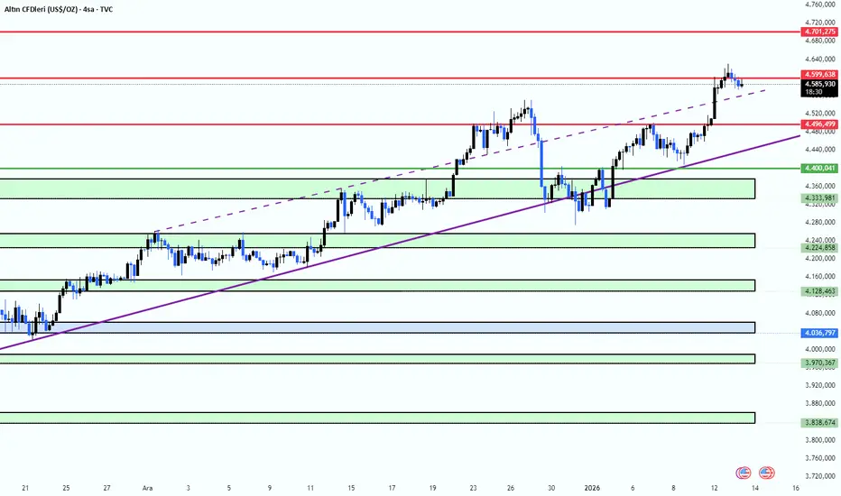 🕹️ Genel görünümde fiyat hareketi pozitif seyrini koruyor. Bu nedenle 4.599,638 direnç bölgesindeki fiyat tepkisi, kısa vadeli yön tayini açısından kritik önem taşıyor.