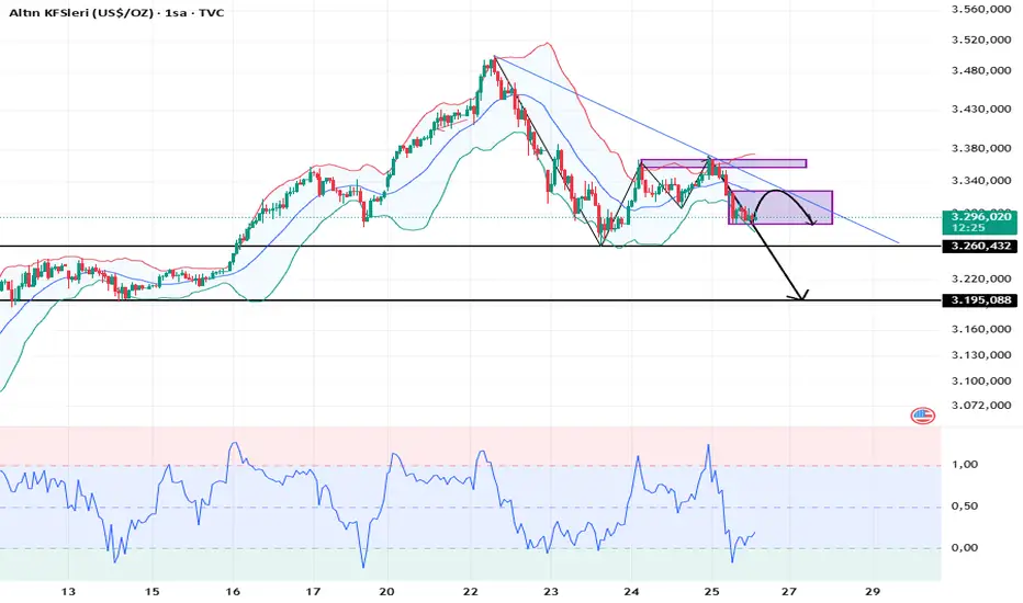 1 saatlik grafikte direnç 3328'de, destek ise 3260'da