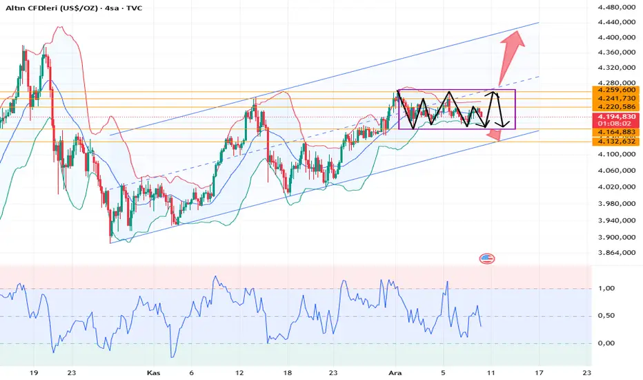 1 saatlik grafiğe baktığımızda, fiyatın mum çubuk grafiğinde ardışık düşüşlerle aşağı yönlü bir trend izlediğini görüyoruz. Hareketli ortalamalar aşağı doğru kesişiyor. Önceki ABD seansının en düşük seviyesi olan 4190 civarında destek arayın. Bu seviyenin altına inilmesi, kısa vadede 4160 seviyesinin daha da test edilmesine yol açabilir.