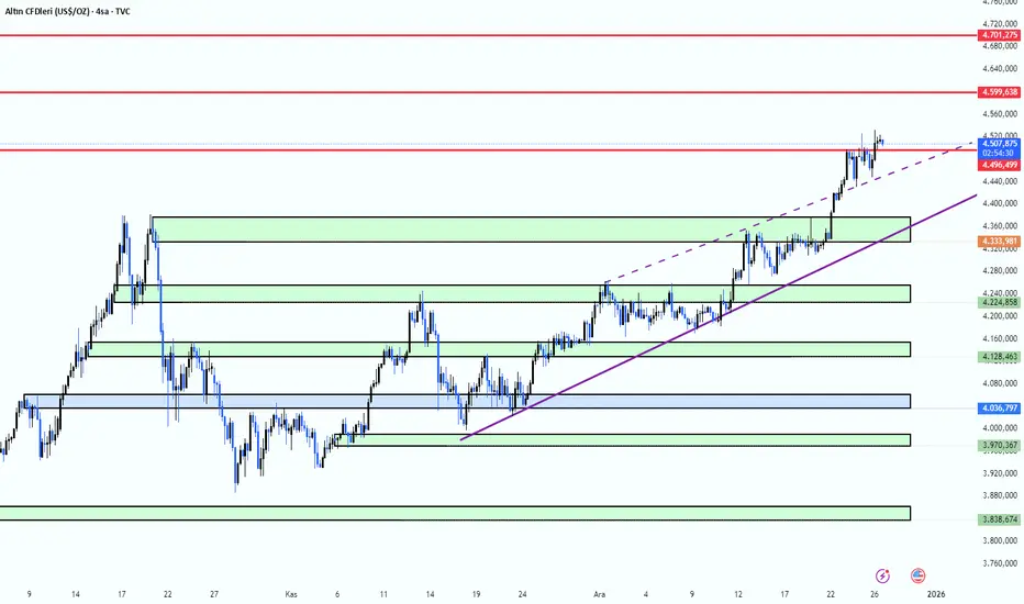 🕹️ Genel görünümde fiyat hareketi pozitif seyrini koruyor. Bu nedenle 4.496,499 destek bölgesinde oluşacak fiyat tepkisi, kısa vadeli yön tayini açısından kritik önem taşıyor. 👀