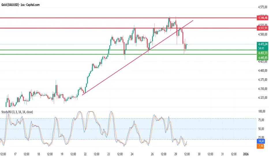4.545–4.550 bandı ana direnç olarak çalışırken, bu bölgeden gelen satışlar sonrası fiyat 4.470 civarında denge arayışında. Aşağıda 4.457 ve 4.445 seviyeleri önemli destekler konumunda. Bu bölge korunursa tepki alımları görülebilir.