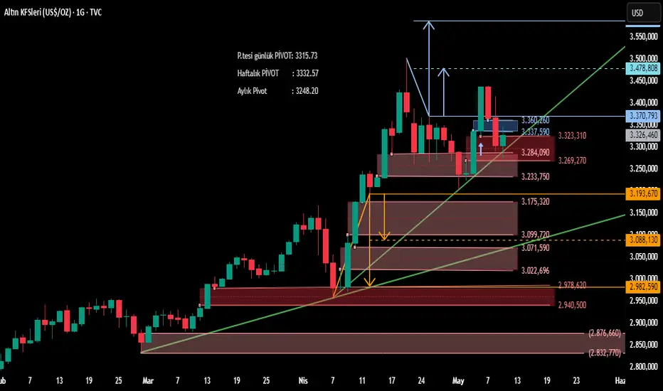 Haftalık kapanış ise Mayıs ayına ait aylık Pivot seviyesi olan 3248.20'nin üzerinde olmuştur ve ayın geri kalanında düşüş beklentisi için bu seviye altında haftalık mum kapanışı görmek gerekmektedir.