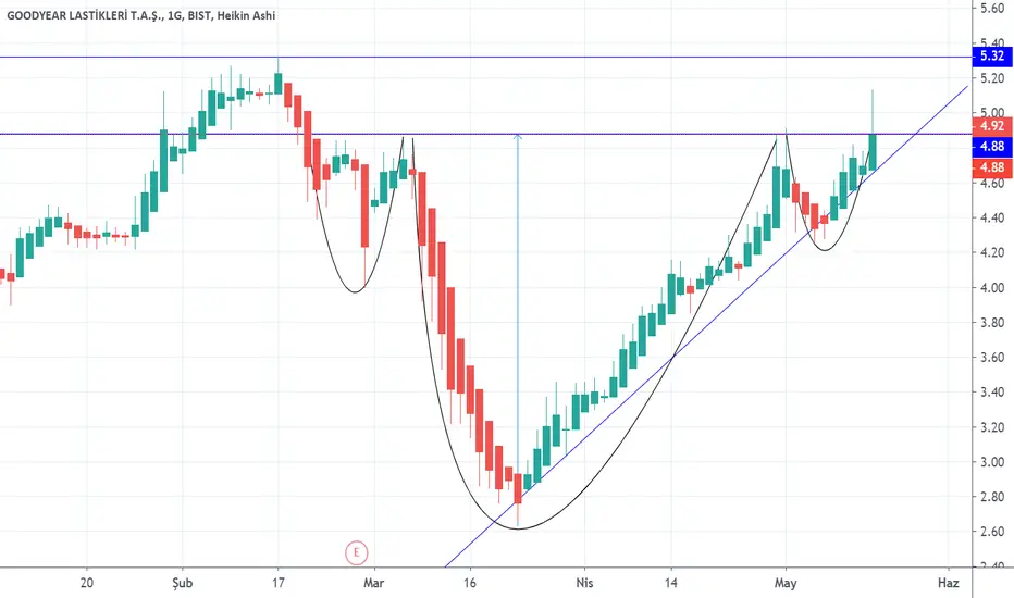 GOODY hissesi 4,73 seviyesinden açılış yaptı ve 20,50 ve 200 günlük üssel ortalamaların üstünde 4,92 seviyesinden kapanış yaptı. TOBO formasyonu grafikten görülüyor.