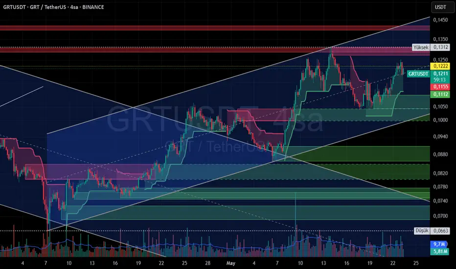0,13$ zirvesinden tepki alarak 0,104$ destek bölgesine gerileyen GRT