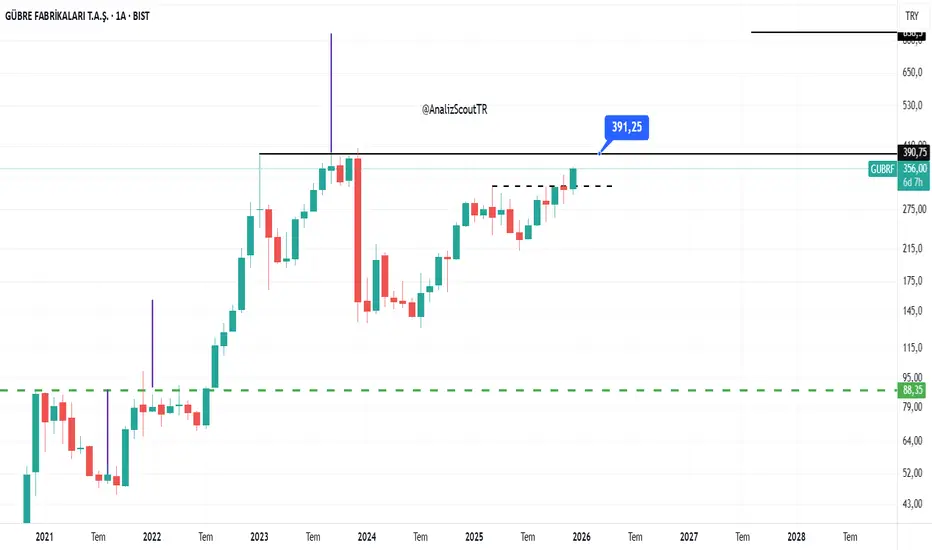 GUBRF 391 Önemli direnç bölgesi 391 üstünde kapanış yukarı yönlü marjlar için alan açacaktır