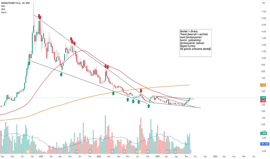 #hekts haftalık grafikte düşen kırılmış, konsolidasyon bölgesinden kurtulan bir fiyat var, 50 günlük hareketli ortalama desteği, hacim artışı, güçlü mum formasyonları mevcut, takip etmeye değer.