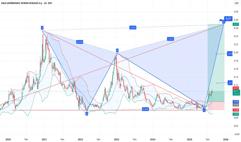 Teknik açıdan baktığımızda hacimde kademeli artışlar,RSI yön değişikliği,OBV para girişi,Keltner kanalının dışında seyretmesi, Envelope kanalına giriş yönü, MACD sinyal kesişesi ve ADX trend yönü sebebi ile hayli uzun ancak karlı bir yolu olduğunu söylemmek mümkün özellikle de TL bazlı grafikte çok yüksek fiyatlarda görüntü intibası bırakan HLGYO'nun doların TL üzerindeki baskısının kademeli olarak eksilmesi ve faizlerin düşmesi ile yeni fiyat hedeflerini ve sert harekketleri beraberinde getirecektir.