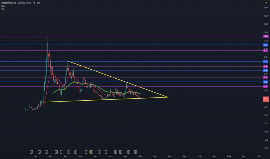 Grafikte Üçgen formasyonu olmakla beraber hedefler fibonacciye göre çizilmiştir.Formasyon şartı olarak sarı çizgi üzeri kapanışlar arayalım.