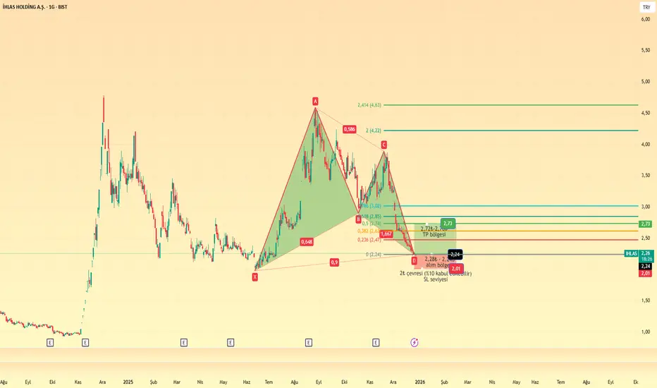 #IHLAS üzerinde oluşmuş tipik bir gartley bullish (boğa gartley) formasyonu görülmektedir.