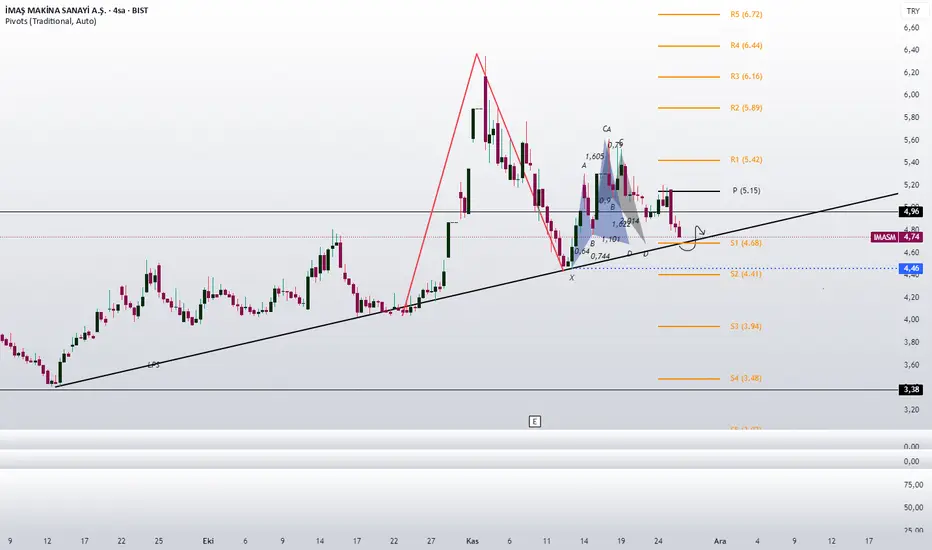 4h pivot seviyesinin iyi çalıştığı görülüyor, ilk destek noktası da iki harmonik desenin bitimine denk düşüyor.