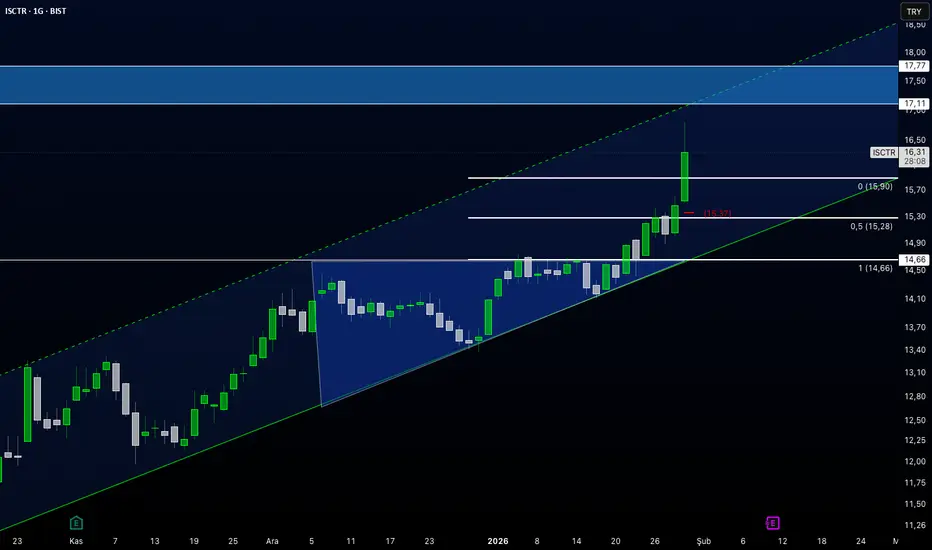 15,90 üzerinde trend üst bandı takip ediliyor.