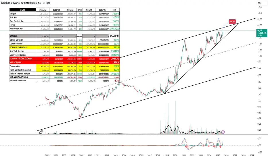 Teknik olarak: Hisse uzun vadeli yükselen trend içinde ve MACD pozitif. İlk hedef 55,20 TL, devamında kanal üst bandı 85 TL civarına kadar potansiyel var.