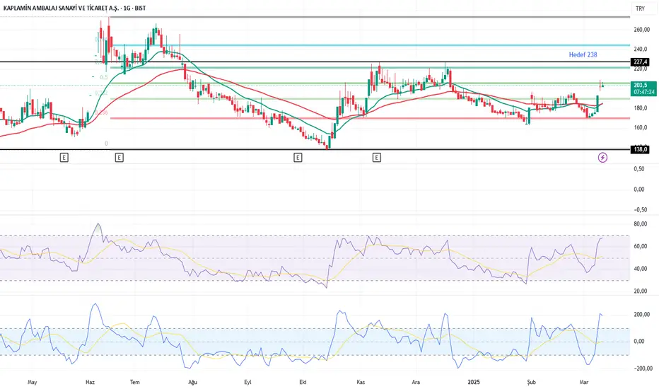 Çizmiş olduğum fibonacci seviyesileri, indikatörler ve osilatörler sonucunda hedeflememe yöntemime göre hedef fiyatım 238
