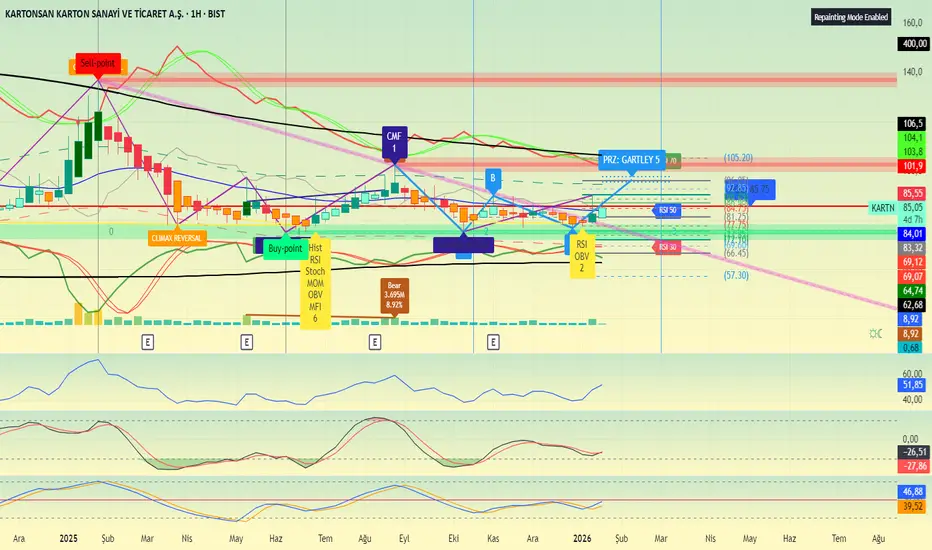 Haftalıkta düşeni kırdı. harmonic analize göre ilk hedef 96.