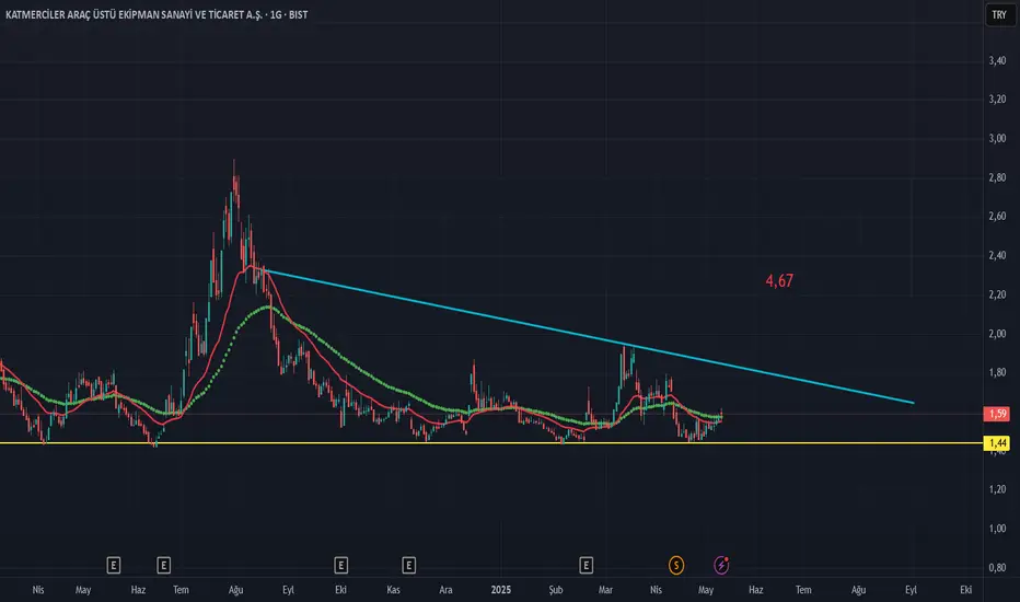 3 Aylık bilanço geldi eder fiyat 4.67 tl.Teknik anlam da 22 üssel ort. 50 üssel ort.yukarı yönlü kesmesini bekleyelim.Sarı çizgi destek çizgimiz.Mavi çizgi üzeri kapanışlarda yukarı yönlü hareket hızlanır.