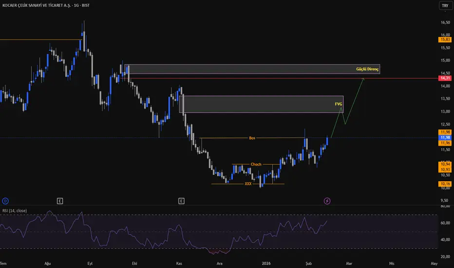 En dip bölgeden order bloğa dokunarak yönü yukarı çeviren hissenin kırılım ile yukarı yönü teyit ettiğini düşünüyorum. ilk orta vade hedefin 14.30 civarları olacağını daha sonra geliş durumuna göre daha tepeleri hedefleyebileceğini düşünüyorum. YTD.