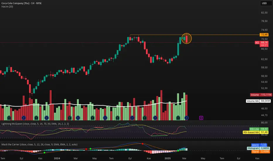#KO Haftalık grafiğinde yutan ayı düşündürüyor. Ayrıca haftalıkta 21 ve 34 haftalık ortalamalardan uzaklaşması da düşünceyi destekliyor.
