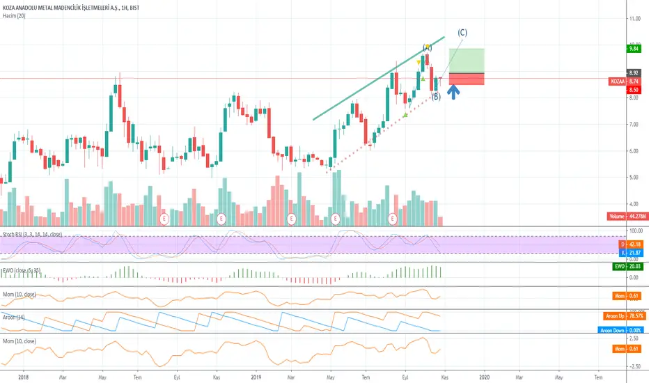 piyasasında volatilenin ortalamada olduğu diğer hisseleri düşündüğümüzde KOZAA % 3.31 luk bir yükseliş ile kapandığı ve orta derecede sıcak para akışına sahip bir Borsa İstanbul ‘da yeterli ağırlıkta bulunduğu söylenebilir. RSI çok düştü fakat EWO düşmezse toparlayıp 8,82 8,92 aralığını deniyecektir