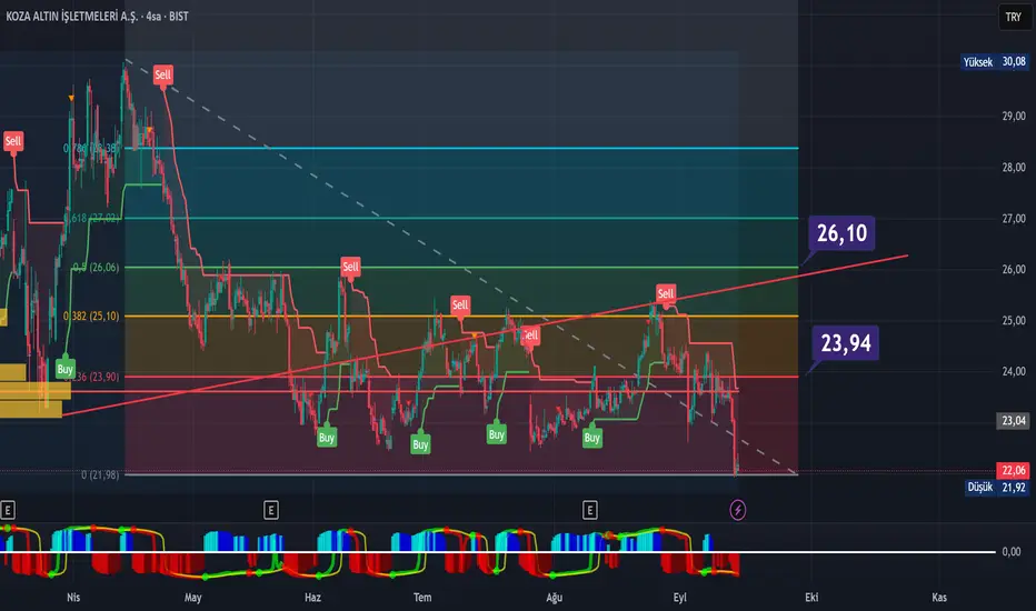 Koza Altın İşletmeleri (KOZAL) hissesi 22,06 TL kotasyonunda ciddi teknik baskı yaşıyor. Teknik analiz göstergeleri açık satış pozisyonu sergilerken, hareketli ortalamalar da aynı yönde güçlü sinyal veriyor. RSI değeri 36,3 seviyesinde aşırı satım eşiğine dayanmış durumda. Stokastik osilatörün %K çizgisi 16,96 ve %D çizgisi 25,64 değerleriyle kritik seviyelerde bulunuyor. Williams Yüzde R göstergesi -95,88 okunarak aşırı satım bölgesinin derinliklerinde konumlanıyor.