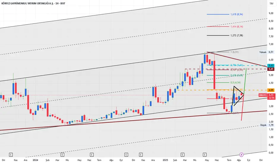 Krgyo hissemiz trend-kanal yapısı güzel çalışmakta son oluşum flama yapmış durumda ve sıkışma bu hafta sonlanacak 3,61 destek ve aşağı kırılım ve üçgen teyit yeri --- 3,92 üçgen üst teyit ve üste kırılım yeridir. flama kırılım takip edilmeli ve ona göre vaziyet alınmalıdır. üste kırılım flama hedefi 0,707 kahverengi çizgidir. Aşağı kırılım ise kanal dibi fiyatıdır.